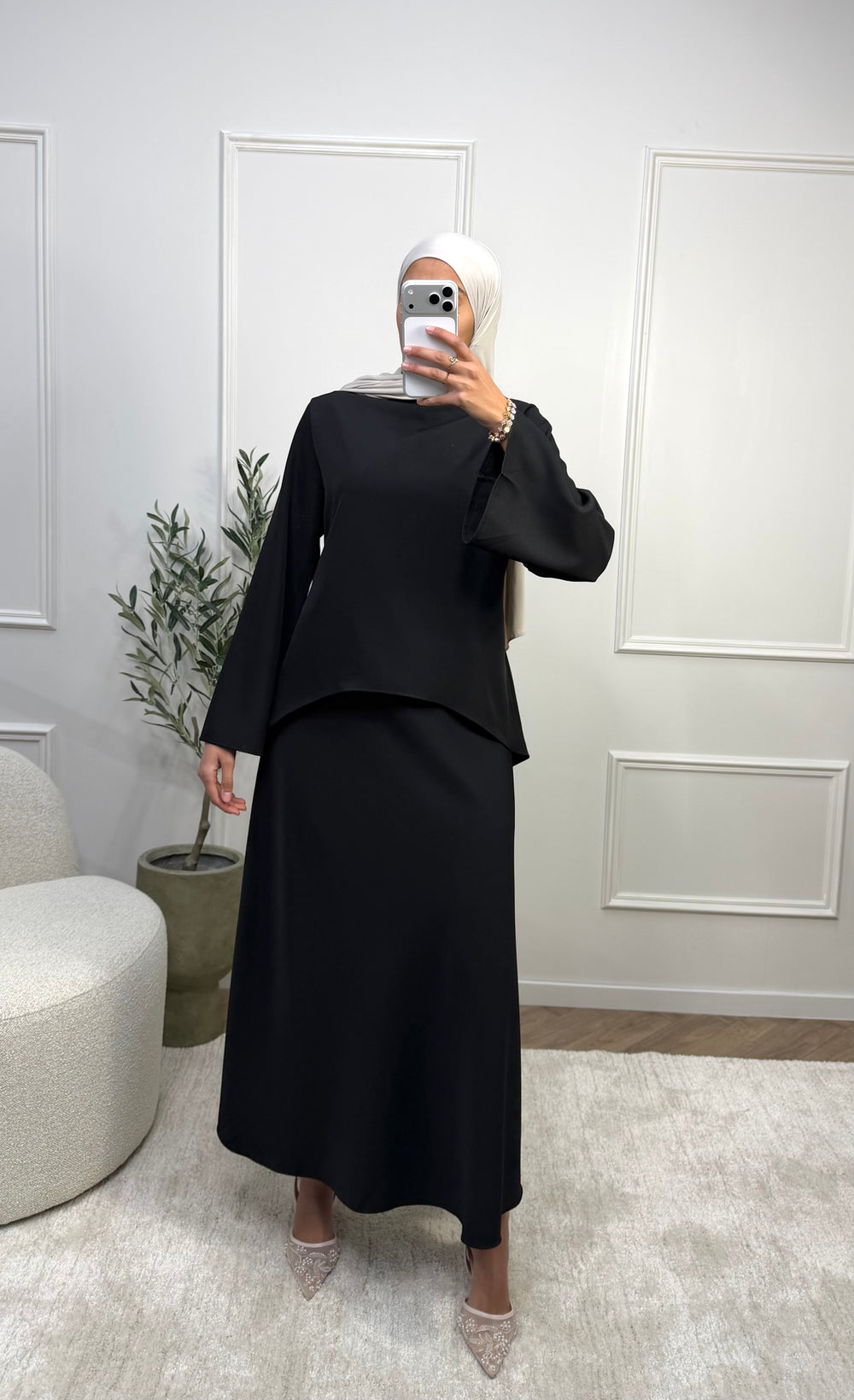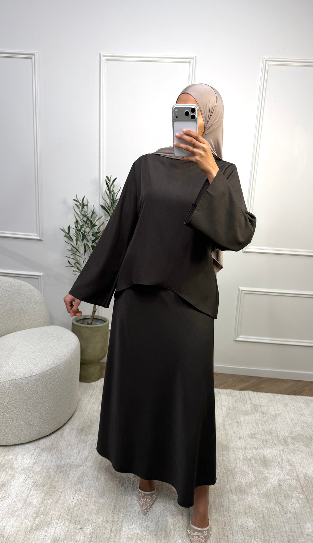Jupe fluide qui s'harmoniser parfaitement avec la tunique à lacets de notre collection. Coupée dans une matière légère et aérienne, elle offre confort et élégance pour un look coordonné et sophistiqué. Idéale pour créer des ensembles modernes.