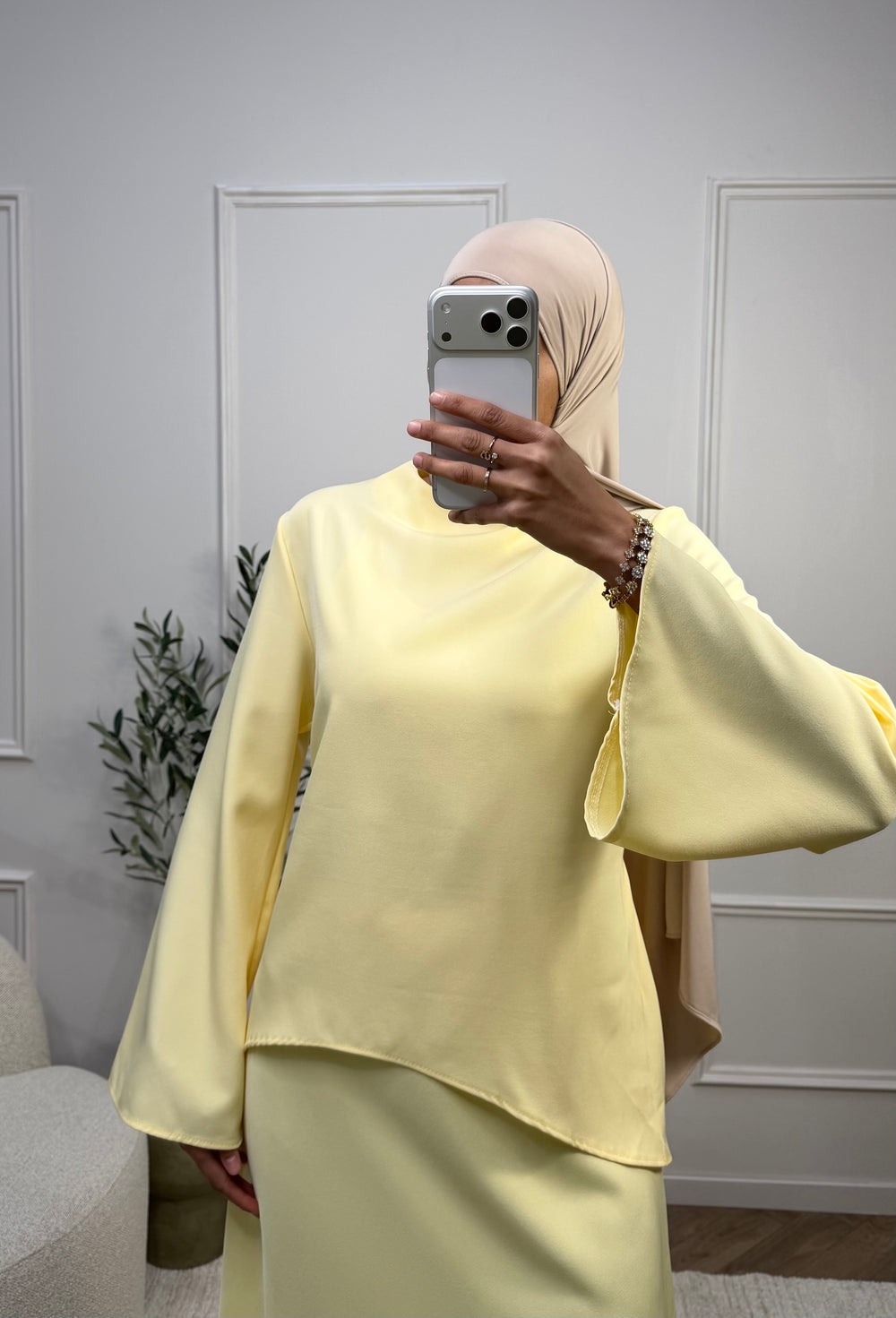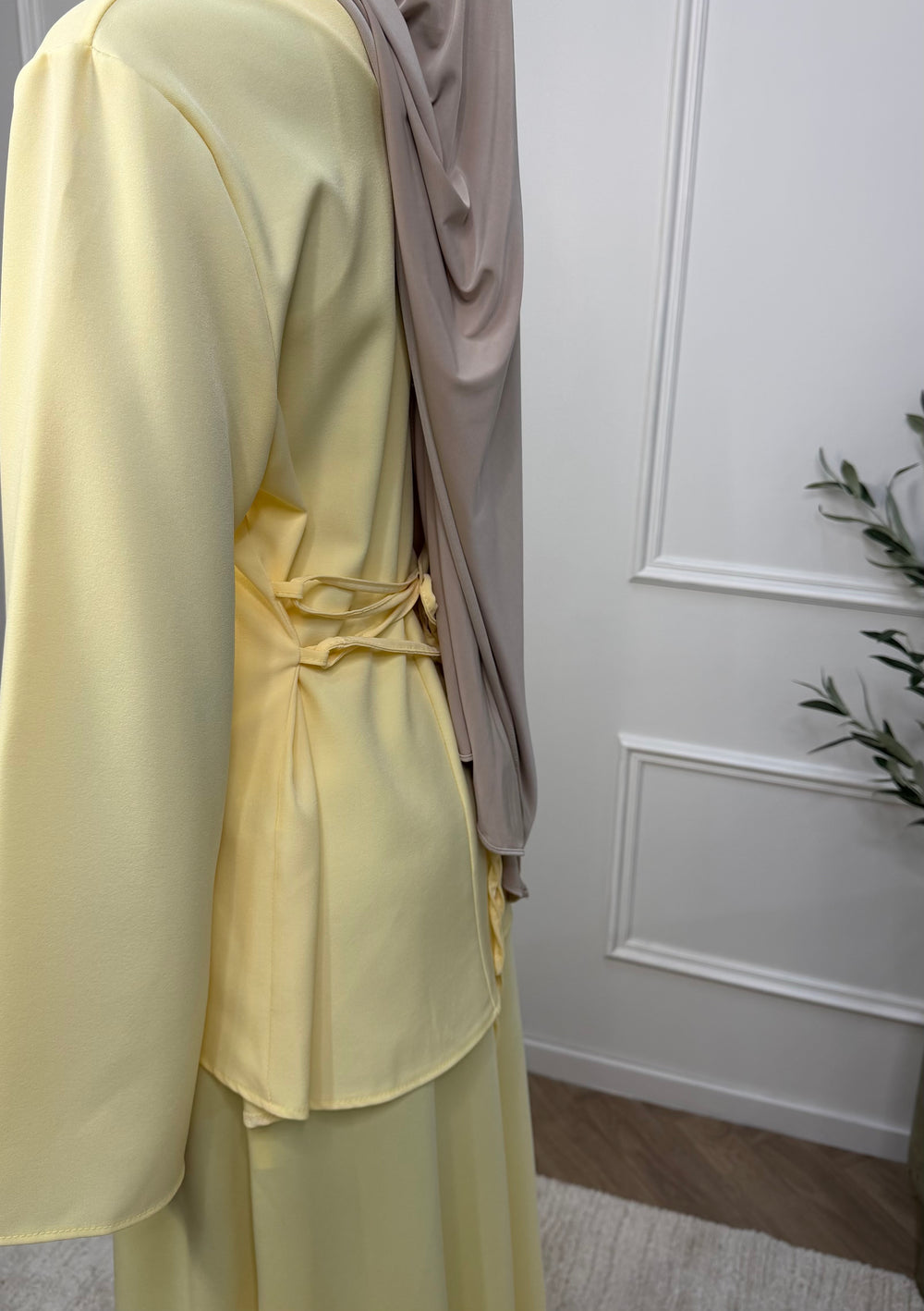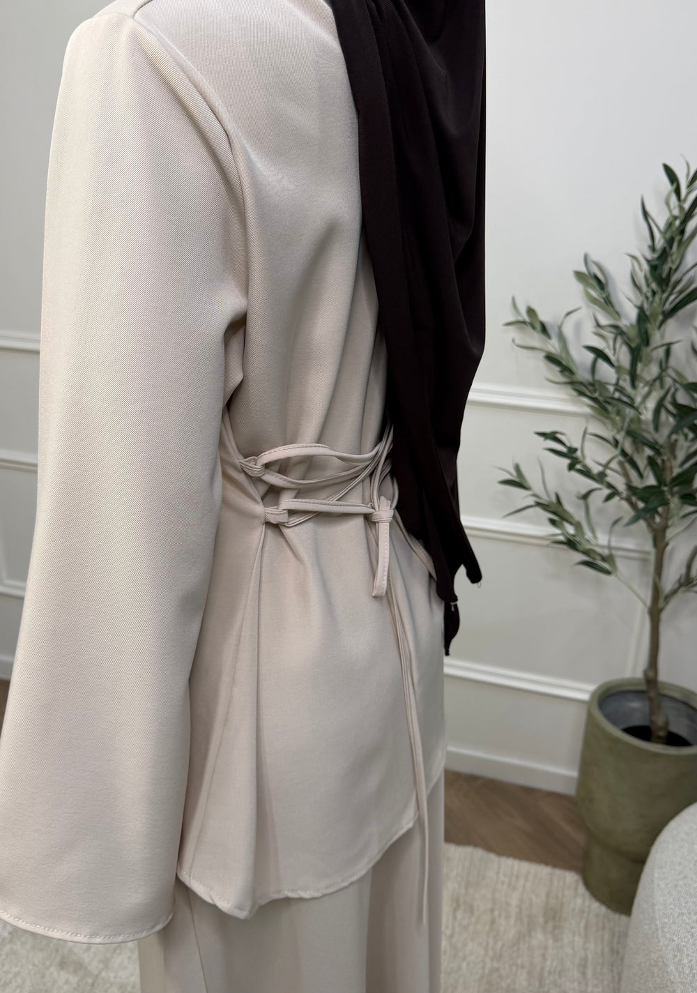Tunique élégante conçue pour sublimer votre silhouette. Le dos ajouré avec lacets ajustables permet de marquer délicatement la taille selon vos préférences. La jupe assortie est également disponible sur notre site pour créer un ensemble harmonieux.